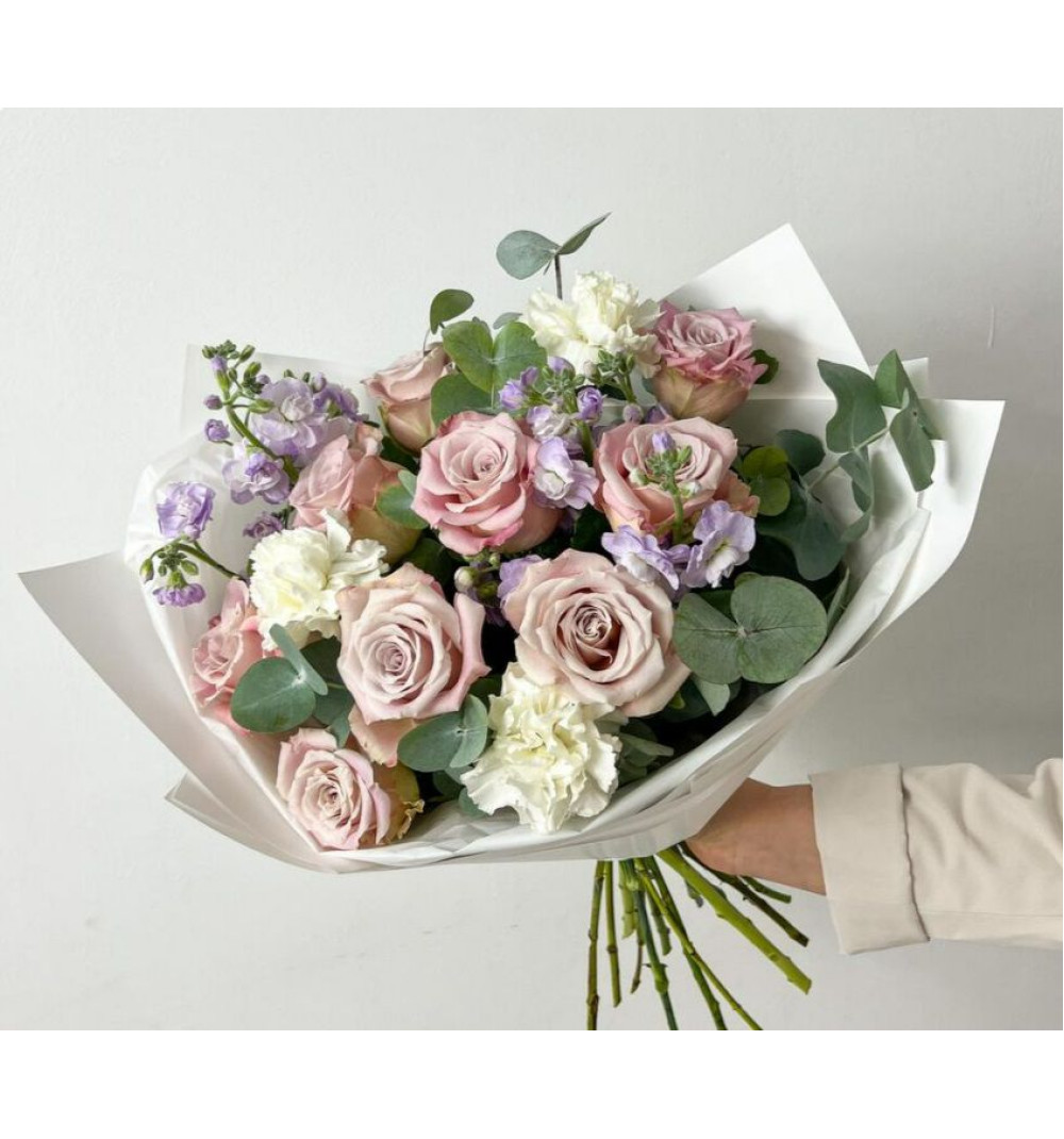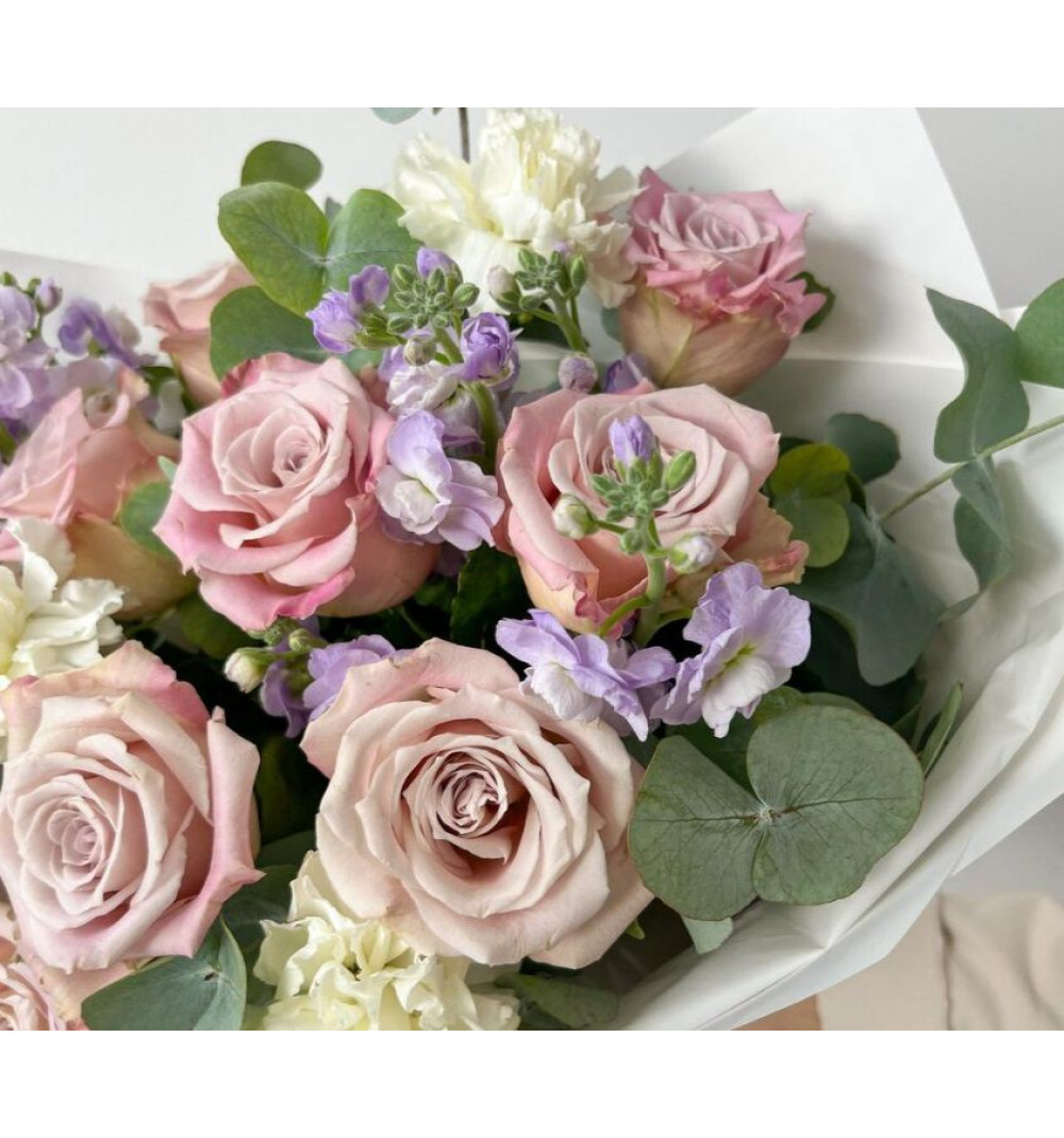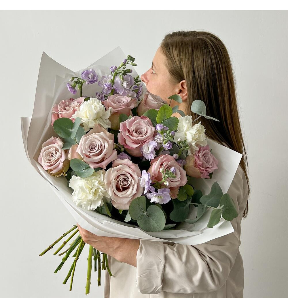 Купить Букет в нежной гамме с розами и маттиолой в Жанаозене за 30 000 ₸ | интернет-магазин «Guls»
